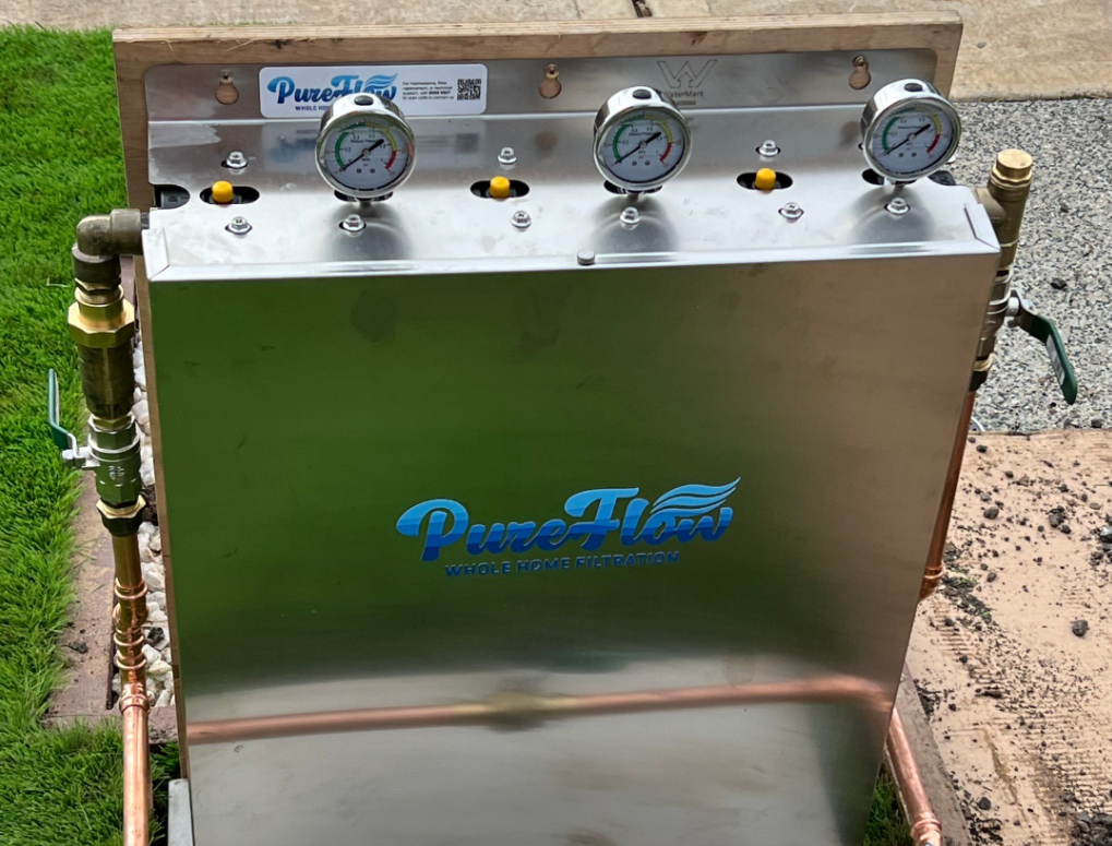 Our advanced four-stage whole house filtration system purifies water to 0.5 microns using large cartridges, optimising efficiency and